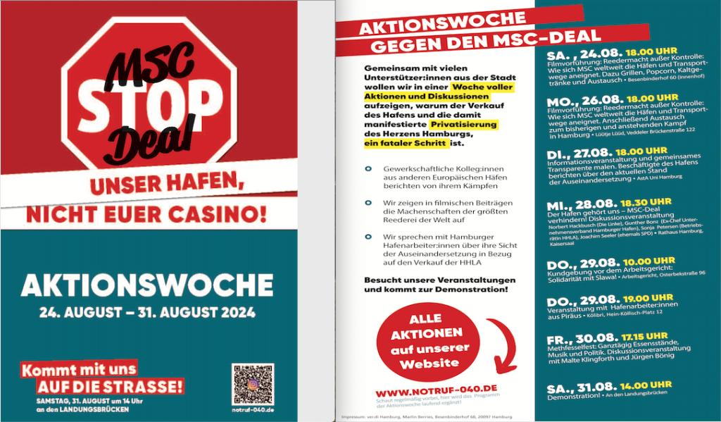 Der Film zeigt wie groß die Macht von MSC bereits ist, wie MSC mit der Politik vernetzt und wo die Interessen der Familie Aponte liegen. Der Verkauf der HHLA, aus Stadteigentum an eine private Reederei ist entscheidend für Hamburg. Die Bürgerschaft wird sich entscheiden müssen, was für Hamburg und den Hamburger Hafen gut ist. / ansehen ..