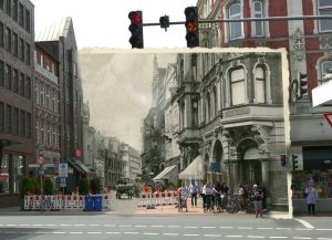 Wer durch die Königsstraße, die Einkaufsmeile Elmshorns geht, ist sich nicht bewußt, dass in den oberen Etagen Elmshorner Geschichte lebt. Da ist eine dort aufgewachsene Mieterin, die sich an Krieg und Nachkriegszeit erinnert und wie sie in der Tanzstunde ihren Mann kennenlernt, ein seit 1946 bis heute dort wohnender Mieter, der das Hochwasser mit bekämpft hat und da ist die Eigentümerin, die sich an den Faschismus erinnert und die keine Vorbehalte hatte, in den 70er Jahren eine Wohnung an eine der ersten Wohngemeinschaften Elmshorns zu vermieten. Deren Mitglieder leben immer noch in Elmshorn, erinnern sich an die Kämpfe gegen das nahegelegene AKWBrokdorf, an lebendiges Wohngemeinschaftsleben. Hier kennt jede*r jede*n, man ist anders, wird aber akzeptiert. Und wohnt mitten im Einkaufsleben, im Kontakt mit den Nachbarn ,über den Geschäften’.